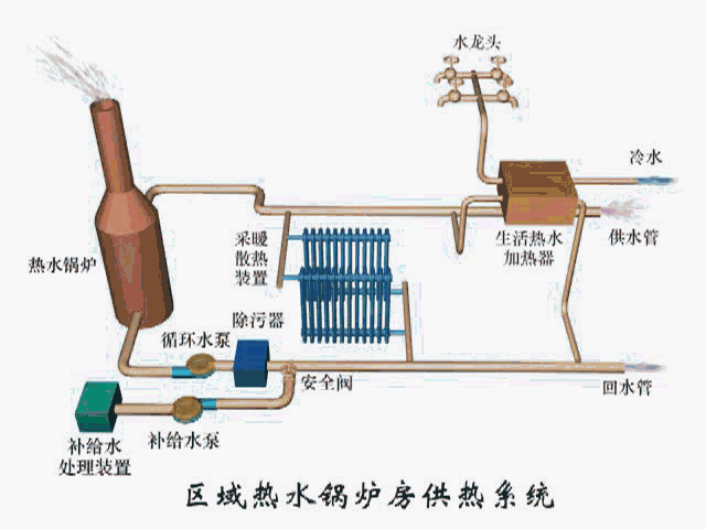 ▲ 区域热水锅炉房供热系统
